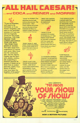 More than sixty years after YOUR SHOW OF SHOWS went off the air, it remains in the conversation when talk turns to the funniest television variety shows of all time. One indication of its high esteem is TEN FROM YOUR SHOW OF SHOWS, a theatrically released film compiling ten of the series’ best sketches.